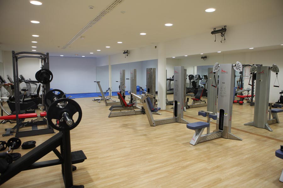 Velika teretana na više od 100m2 u kojoj možete vježbati na modernim fitness spravama i dovesti vaše tijelo u formu. Fitness dvorana je opremljena vrhunskim spravama za sve mišićne skupine, a dio dvorane je namijenjen vježbama istezanja, aerobicu i sl.